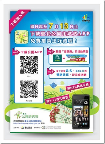 下載臺北公園走透透APP,免費抽獎送好禮