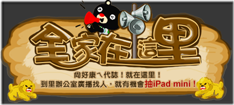 全家在這里無論你在哪裡。全家就在那里尚好康的代誌!就在這里!到里辦公室廣播找人,就有機會抽iPad mini!!結束時間:2013/03/31