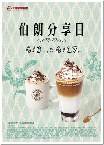 活動網頁:伯朗咖啡館-6/3及6/17飲品買一送一